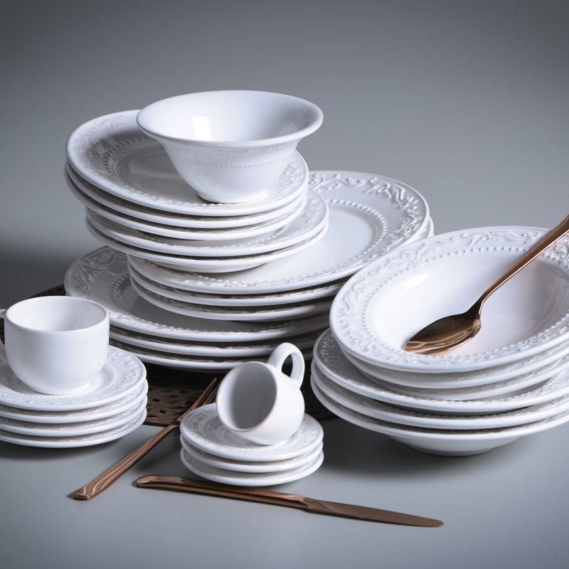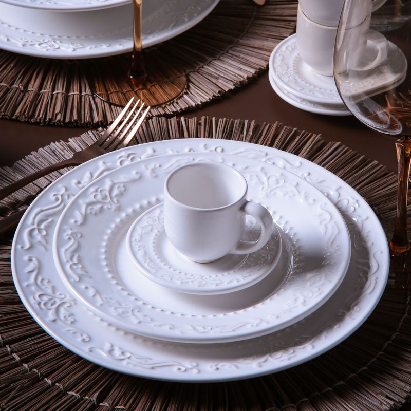 PRATOSTRENDSCOLEÇÕESBRANCOSCOLORIDOSFAIANÇAPRATO RASOAcanthusConjunto com 6 Pratos Raso Acanthus Branco Ø26cm