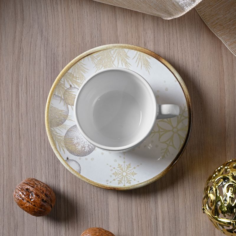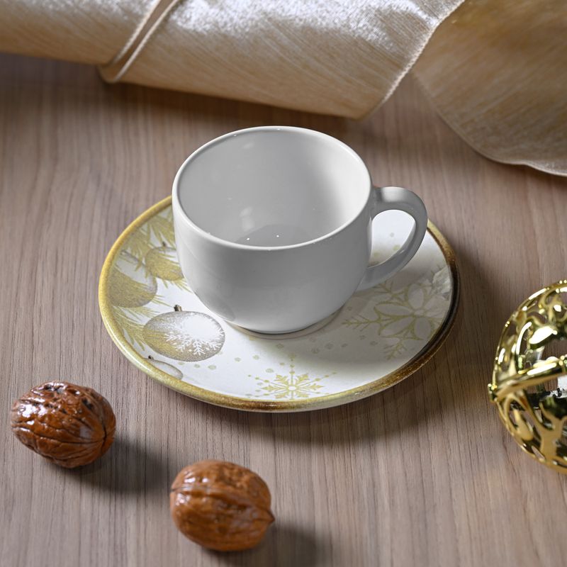 Conjunto com 6 Xícaras de Chá com Pires Coup Stoneware Noite Dourada 220ml